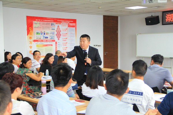 此次培訓(xùn)特邀清華大學(xué)、北京大學(xué)等高校總裁班特聘講師、營銷咨詢師高海友授課。高老師采取分組積分形式,從選人與培養(yǎng)、培養(yǎng)市場精英、提升營銷技能、打造管理團(tuán)隊(duì)、成長式激勵(lì)等五個(gè)方面詳細(xì)講授了如何打造高效團(tuán)隊(duì)的舉措。高老師授課方式幽默風(fēng)趣、內(nèi)涵深刻,運(yùn)用情景式案例,實(shí)戰(zhàn)型解答,以真實(shí)案例說明實(shí)際問題,并提出營銷人員需要做到明道生慧,即明人、明人性、明專業(yè)、明行業(yè)、明競品、明客戶、明關(guān)系、明流程、明時(shí)勢、明根本。此次培訓(xùn)為期一天,在整個(gè)培訓(xùn)中,講師穿插一系列的現(xiàn)場互動(dòng),形式豐富多彩,員工積極參與受益匪淺,整個(gè)課堂充滿活力。